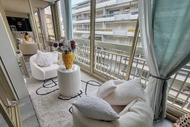 - côté SUD : un grand séjour avec cusine ouverte moderne et une belle terrasse ensoleillée toute la journée, avec vue sur le Palace du Carlton